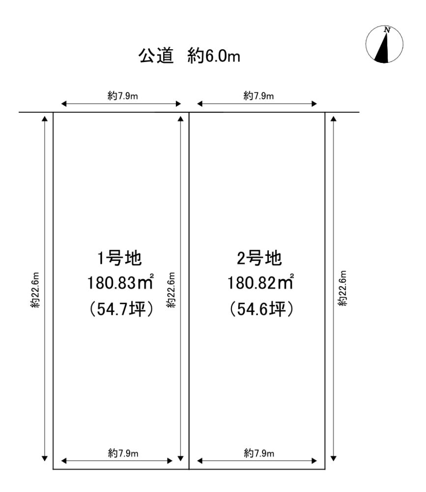 ■土地面積:180.82㎡(54.6坪)・180.83㎡(54.7坪)